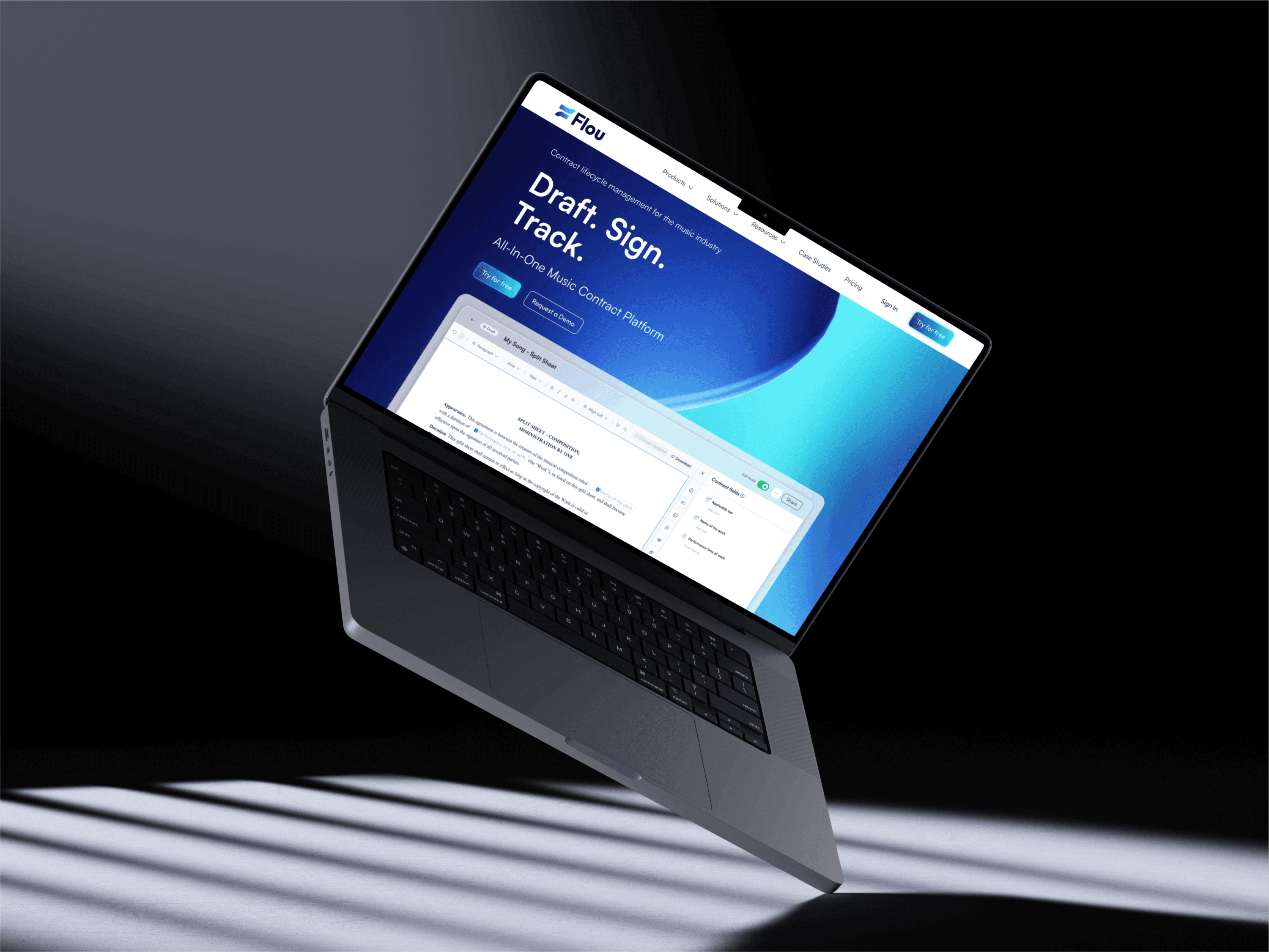 We designed a webpage for a Contract Lifecycle Management (CLM) system tailored specifically for the music industry. The challenge was to create a user-friendly and visually engaging platform that highlighted Flou’s innovative features